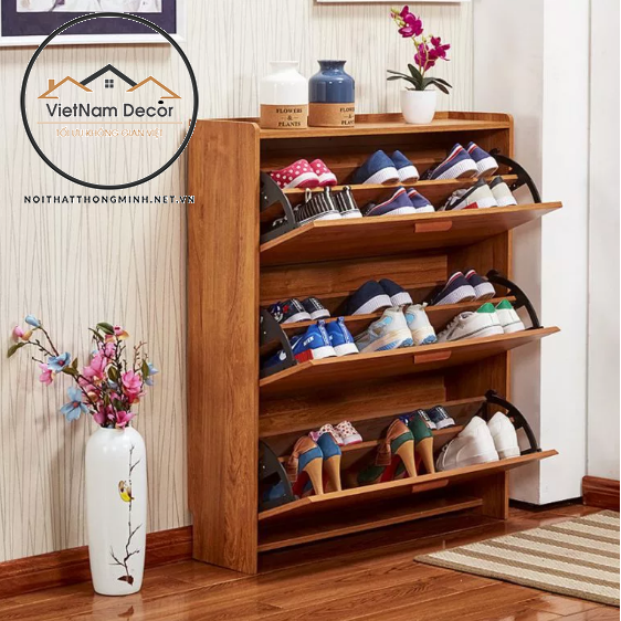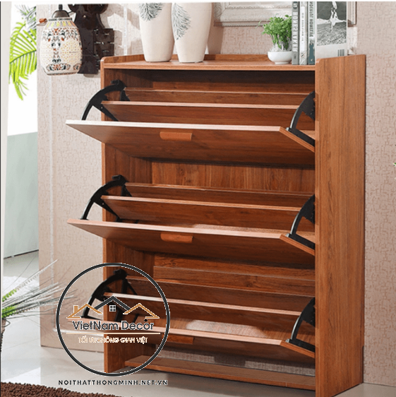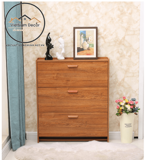 Tủ giày với thiết kế đơn giản, nhỏ gọn vào gồm 3 ngăn để giày tiện dụng phù hợp với mọi không gian nội thất khác nhau. Sản phẩm được làm từ chất liệu gỗ công nghiệp cao cấp kết hợp với vân gỗ sồi sang trọng tạo điểm nhấn nổi bật cho căn phòng của bạn.